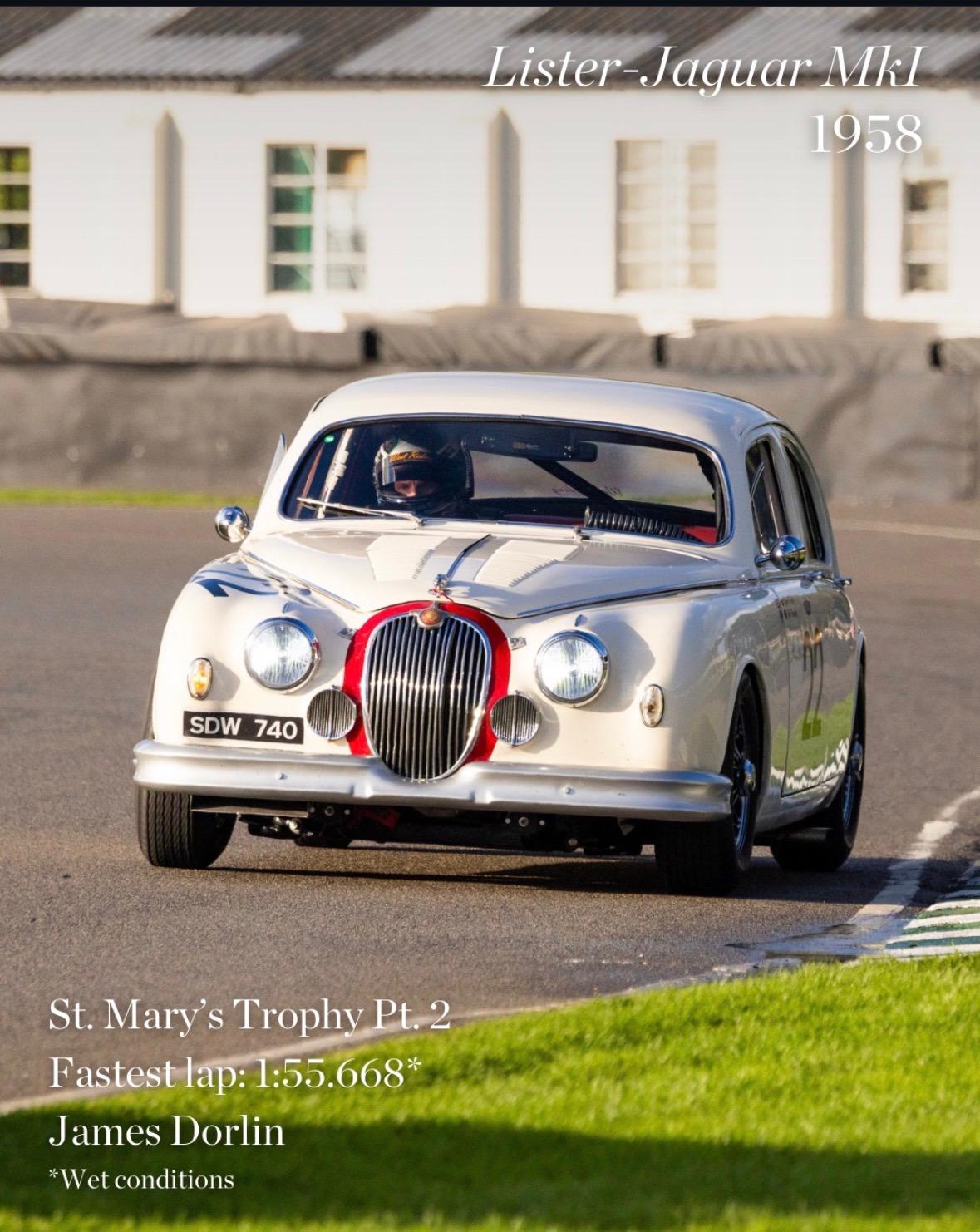 Goodwood said: "BTCC Driver James Dorlin dominated the pack in this 1958 Lister-Jaguar during the second part of the St. Mary's Trophy presented by Motul. The young ace took victory in the wet taking the almost 70 year old Jaguar for a well-deserved drift around Goodwood Motor Circuit."